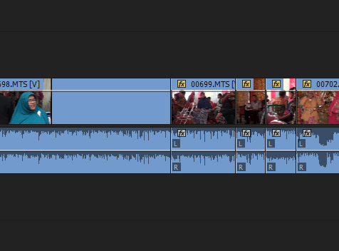 Masukkan Klip ke BIN masing2 sesuai acara. Bikin tampilan timeline jadi besar/thumbnail lebih besar. Biasanya fitur-fitur premiere pendahulunya tampilan video dan audio di timeline premiere sangat terlalu kecil. Sekarang di Adobe Premiere Pro CC mulai dari 2014, 2015, dan 2016 bisa diperbesar dengan menekan tombol Shift + (+), dan sebaliknya kalau mau mengembalikan nya dengan menekan shortcut keyboard Ctrl + (-). Dengan memaksimalkan tombol ‘Zoom in’ dan ‘Zoom Out’ ini sangat memudahkan dalam proses editing dan menjadikan tampilan timeline editing lebih besar sehingga proses editing lebih bisa dilakukan dengan lebih cepat.
