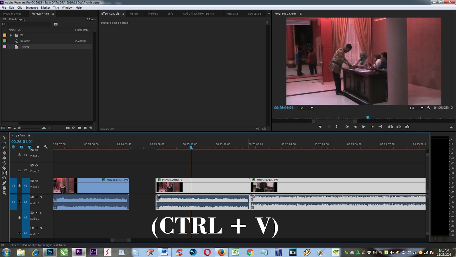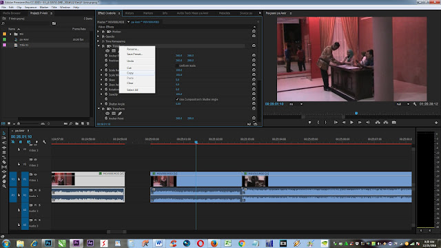 Untuk mengubah ukuran klip pertama, pilih di control dalam urutan ke skala ukuran yang Anda inginkan, kemudian Ctrl + C (copy) transformasi Anda dari panel Efek (Control Panel) tadi, pilih (select all clip) sorot semua sisa klip lainnya dalam urutan, kemudian tekan keyborad Ctrl + V (paste ) (di Windows).