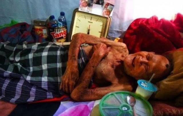 “Saya pengennya itu mandi. Sudah sembilan bulan sama sekali tidak tersentuh air. Tapi mau bagaimana, keadaan saya begini,” ucap Mbah Kasbi.