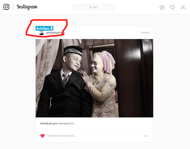 - Open Image or Video, that will be appear blue Instadown Logo (with Arrow)